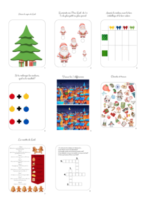 Il y a 8 pages d’activités différentes qui sont plastifiées et reliée.